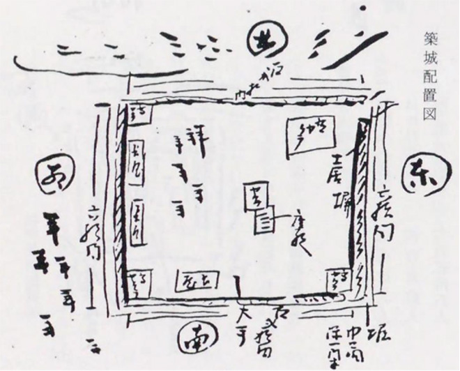 加えて、敵を攻撃・監視するための櫓(矢倉)が、防御線の内側に建てられている。戦国時代の常識では堀際の土塁の上に建てて高さを稼ぎ視界を広げるべきだが、絵図の位置では自城の塀が邪魔になり、敵を有効に攻撃できない。