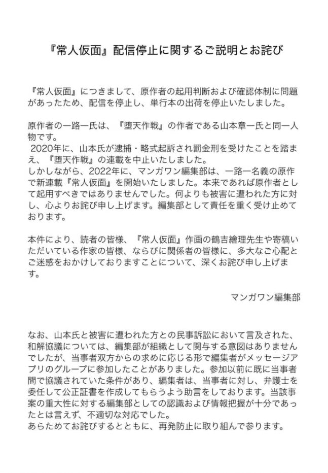日本漫画家協会からも業界の信頼に関わる問題だと緊急声明が出されました。