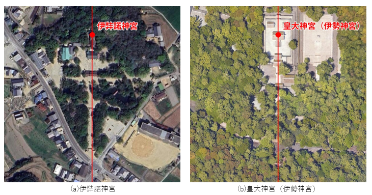 図-4 伊弉諾神宮・伊勢神宮と平城京の空間的位置関係