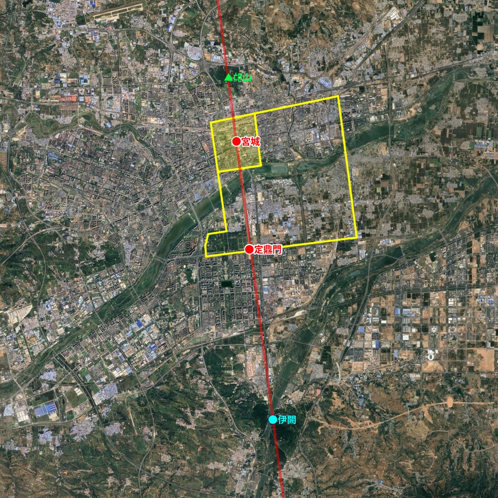 「天子南面す」の中国では、長安や洛陽を中心にいくつもの南北を基軸とする都が造営されました。しかしながら、この隋洛陽城だけは、過去の伝統にとらわれずに、北から7.5度西偏していたのです。