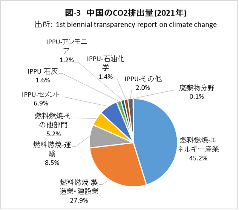 図-4で2010年代半ばに、排出量の増加率が低い期間が見られます。これは石炭使用による深刻な大気汚染の対策として、中小設備を中心に石炭利用を規制したことで、CO2排出量の増加が抑制されたものです。