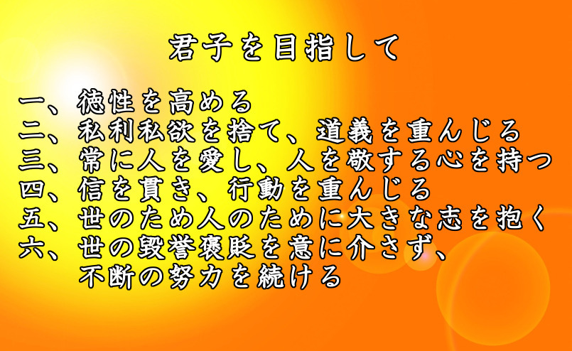 『論語』の最後には、「命(めい)を知らざれば、以て君子たること無きなり。礼を知らざれば、以て立つこと無きなり。言を知らざれば、以て人を知ること無きなり」(尭曰第二十の五)という有名な章句があります。孔子は、天命を知り、礼儀を知り、人の言葉を知り、真に人とは何かを知ることで初めて、君子への道へと繋がる、と言っています。我々は学問の本義に徹し、一歩一歩着実な歩みを進めるべく、不断の努力を重ねて行かねばならないのです。