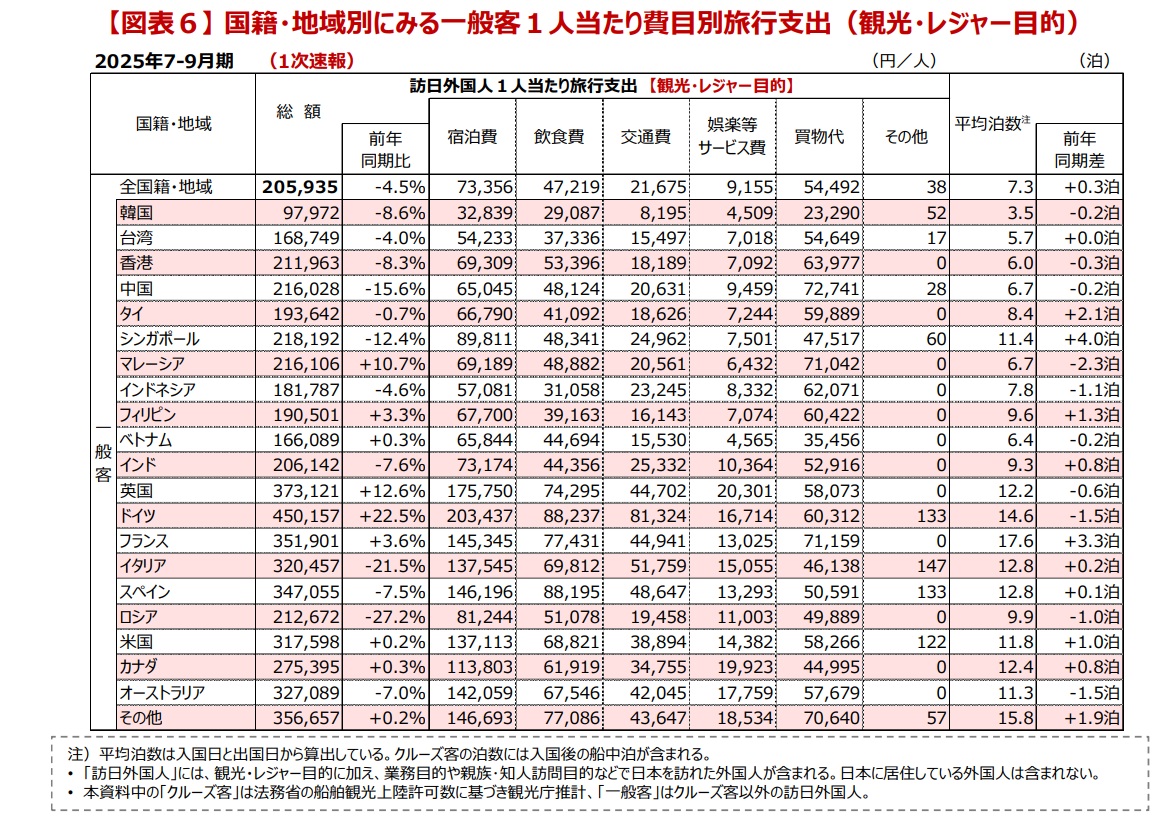 観光・レジャーでの1人当たりの平均支出額というのを観光庁が出しています。
