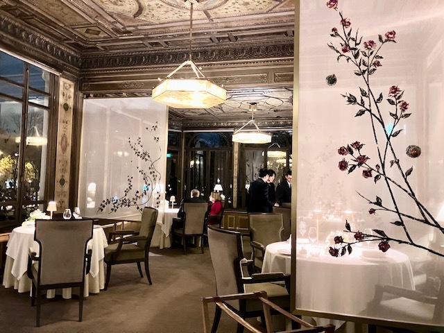 「アレノ・パリ」でのディナーに、パヴィヨン・ルドワイヤンへ。ここには、ヤニックがてがる、ミシュラン3つ星、2つ星、1つ星の3軒が入ってる。