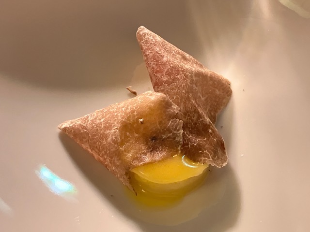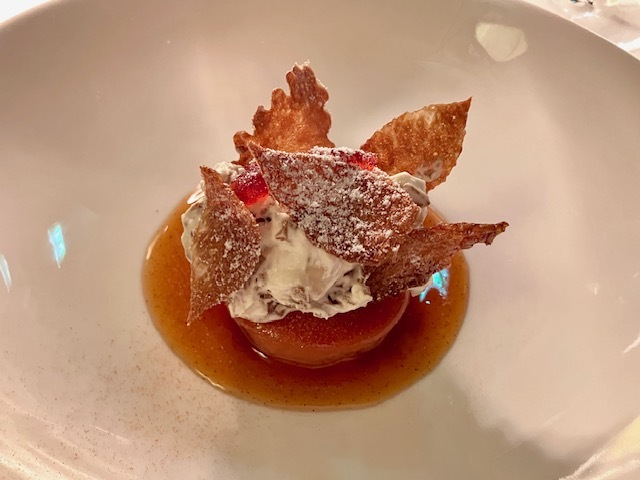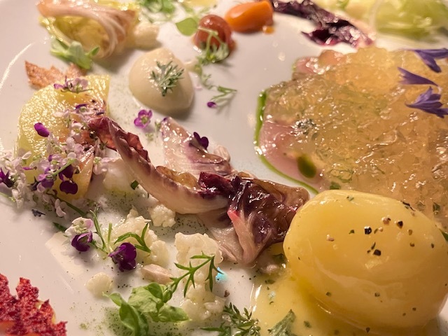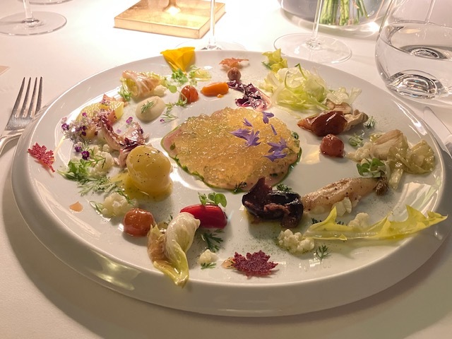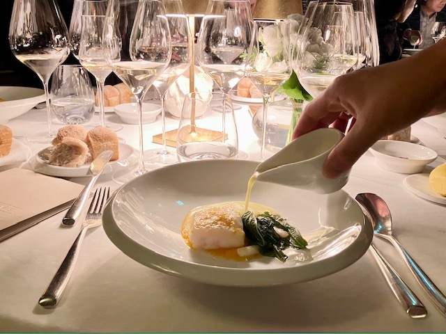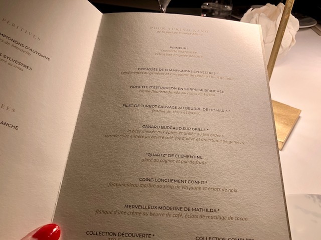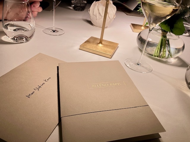 コヴィッド後にマイナーチェンジした内装(刺繍美しいストールがとてもきれい)、新たな演出(ワイン改めて選んでおいたり、ゲスト名記されたメニューが用意されてたり)、そして新しい料理の数々。