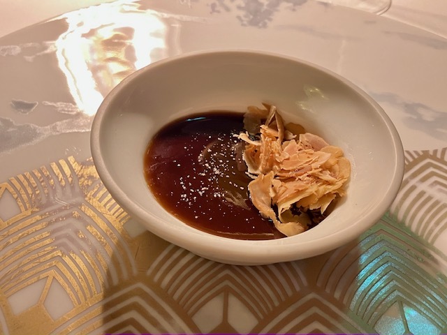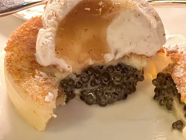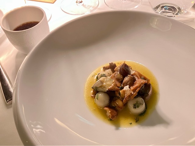 10数種の野菜&セロリ抽出液のジュレ(素晴らしい!)、きのこ(先月行って感動した「ターブル・ド・パヴィ」を思い出す)、白トリュフパスタ、カヴィアを潜ませたブリオッシュ…