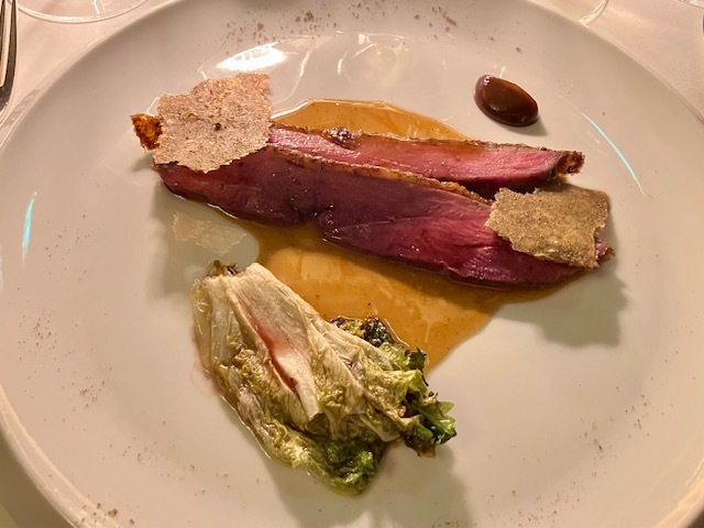 ヒラメ&オマールバター&シソ(今日イチ!)、鴨(その準備と調理法に感服する)。