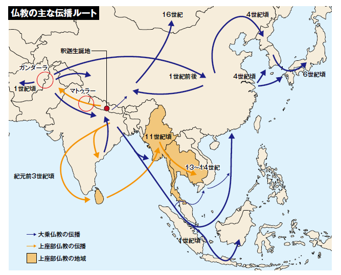 仏教の主な伝播ルート