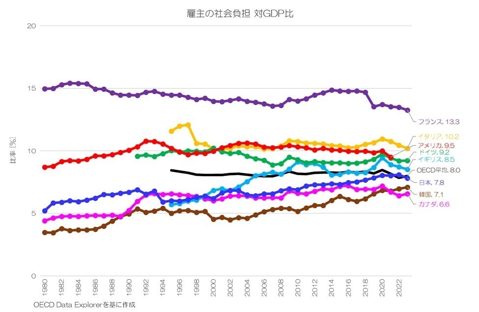 最後に、雇主の社会負担 対GDP比です。