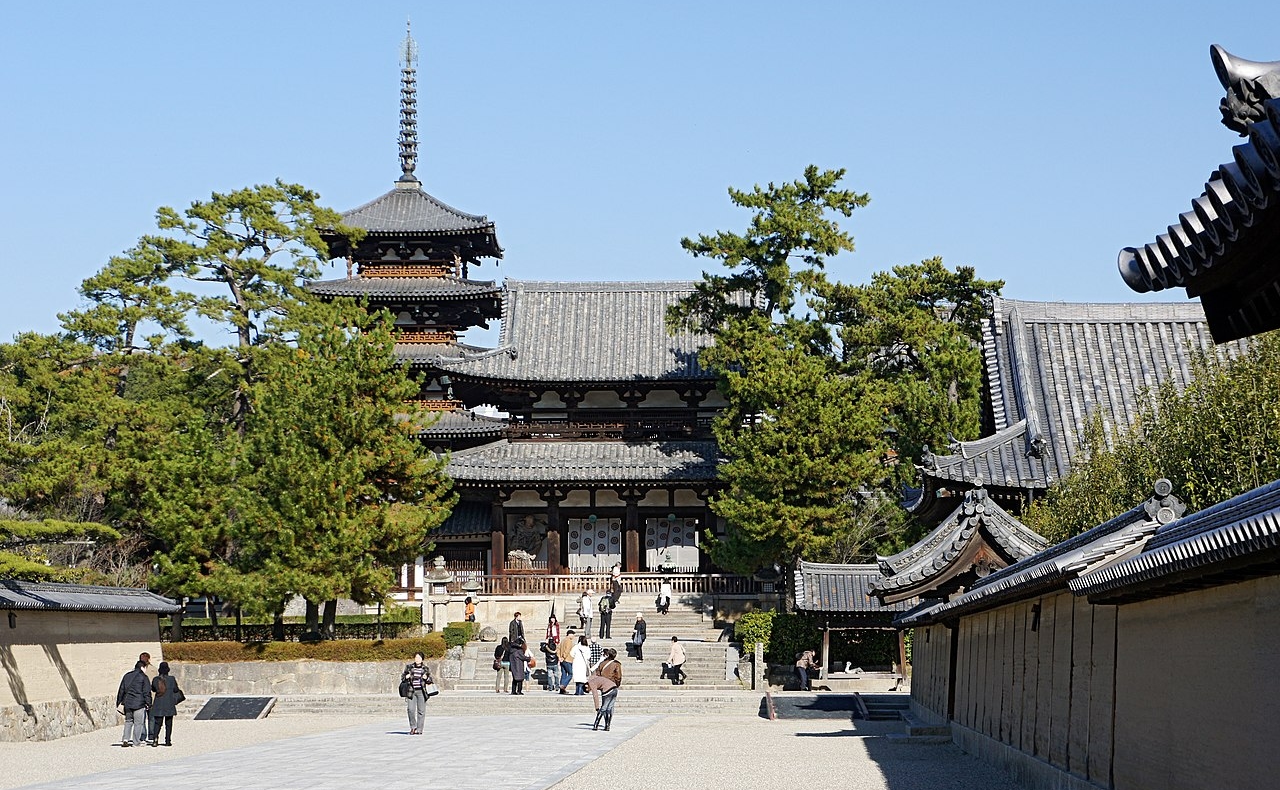 古代寺院の姿を現在に伝える法隆寺(607年創建)Wikipediaより