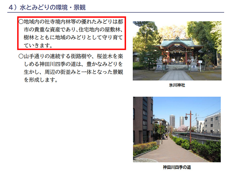 これらのみどりやオープンスペースは、景観形成だけでなく、防災面においても極めて重要です。私は令和3年の決算特別委員会総括質疑において、中野区の環境における神社・寺院の存在の大きさを強く訴え、マスタープランにその位置づけを明記するよう一貫して指摘してまいりました。