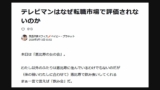 「テレビマンはなぜ評価されないのか」を自ら証明したテレビマンの自己意識(アゴラ編集部)