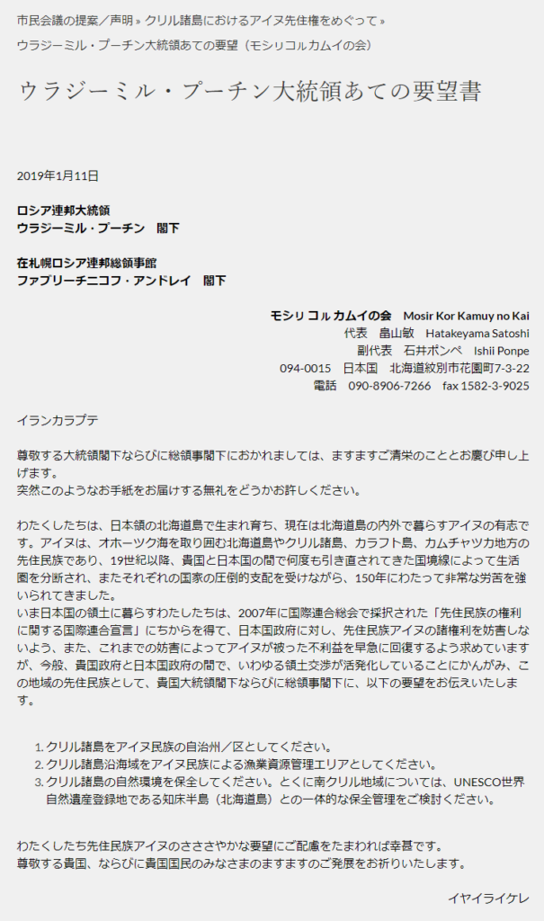 ※トップ画像は門別アイヌ協会の畠山敏とのりこえねっと共同代表の石井ポンペがロシアの北海道侵略の理由作りをしていた画像。(SNSで拡散されると慌てて削除された)