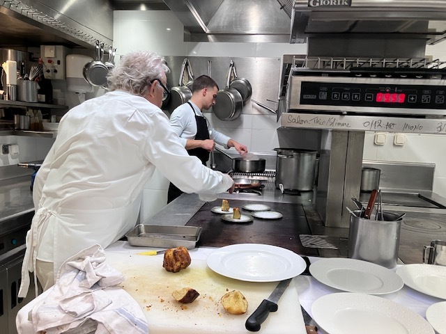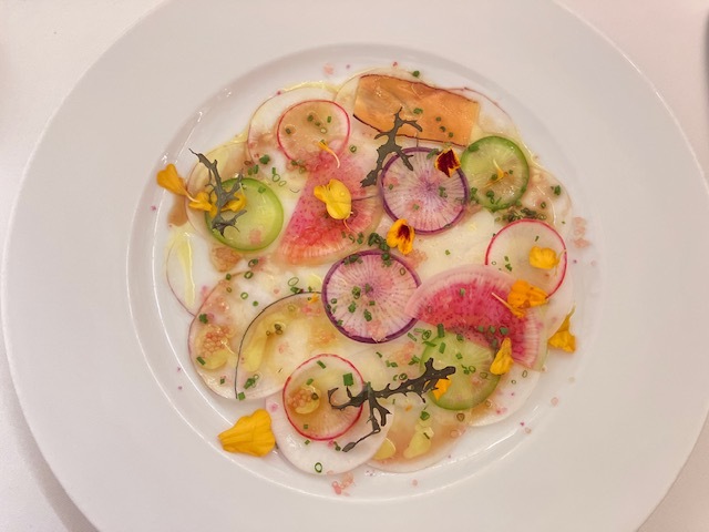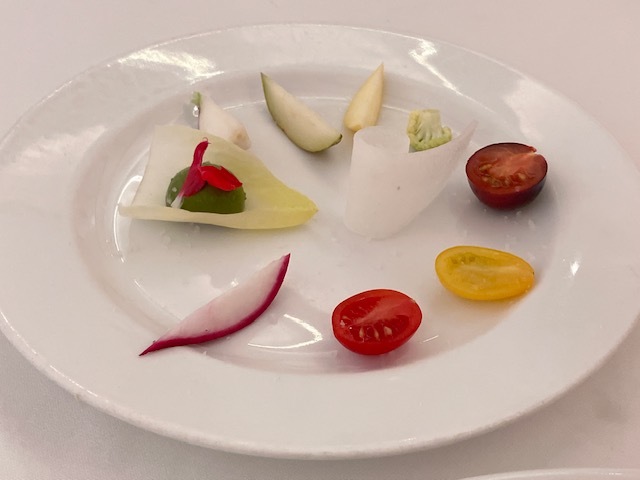 一皿だけ、”日本人の私にはちょっぴり塩が強いかな〜”というと、”あー、これだけ僕が最後に塩振った”と(笑)。アランは、塩の国、ブルターニュの人だものね。