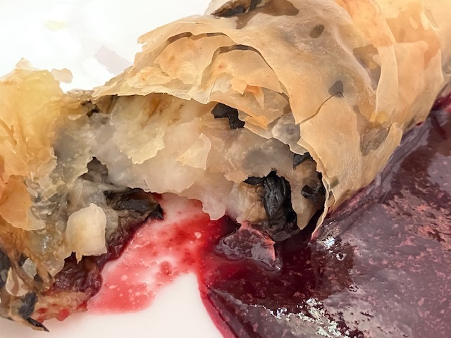 11ヶ月ぶりの「ラルページュ」は驚きと感動の美味なる新作盛りだくさん。セロリ&きのこのパートフィロ焼き&ベトラーヴソース、さいっこう!