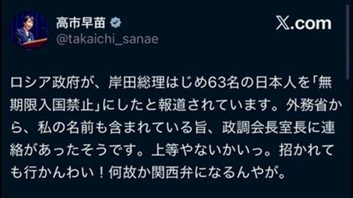 — 高市早苗 (@takaichi_sanae) March 30, 2026