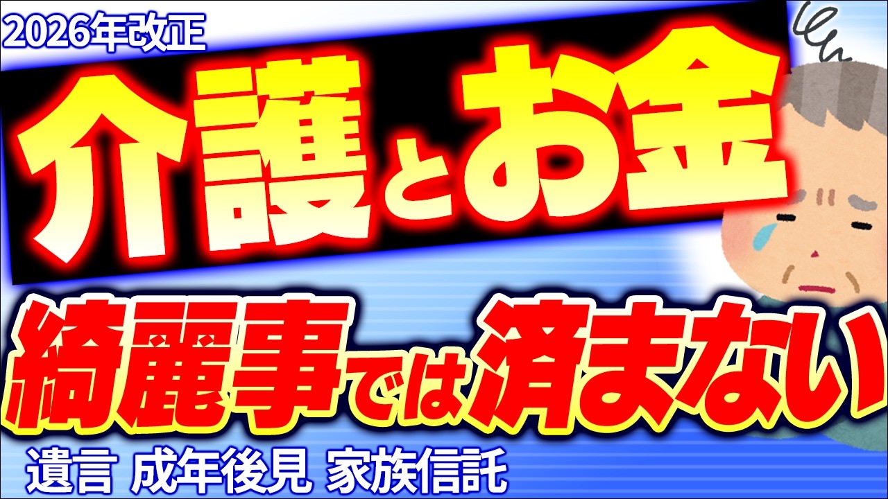 遺言書・成年後見制度が大きく変わる!お金を貯めた人ほど老後に迷う理由 山田 真哉 2026.04.10 06:10 X Facebook はてブ LINE 法律 認知症やせん妄によって判断能力が低下した場合に備え、老後の資産管理や施設入居、相続対策に関わる家族信託・成年後見制度・遺言制度の基本と、2026年改正案の要点を解説します。 【目次】 00:00 今回のダイジェスト 00:17 オープニング 01:25 老後の“魔の10年” 05:56 介護とお金(家族信託と成年後見) 11:02 成年後見制度と遺言書の法改正 15:03 最後に ■ 公認会計士・山田真哉氏が、税金・ビジネス・投資・経済の得する情報や、国のややこしい制度などを解説する「オタク会計士ch【山田真哉】少しだけお金で得する」。チャンネル登録をお願いします。 【更新】給付つき税額控除はマイナポイント型の電子マネーで 日本も参加「レバノン停戦」声明:対米追従からの転換なるか