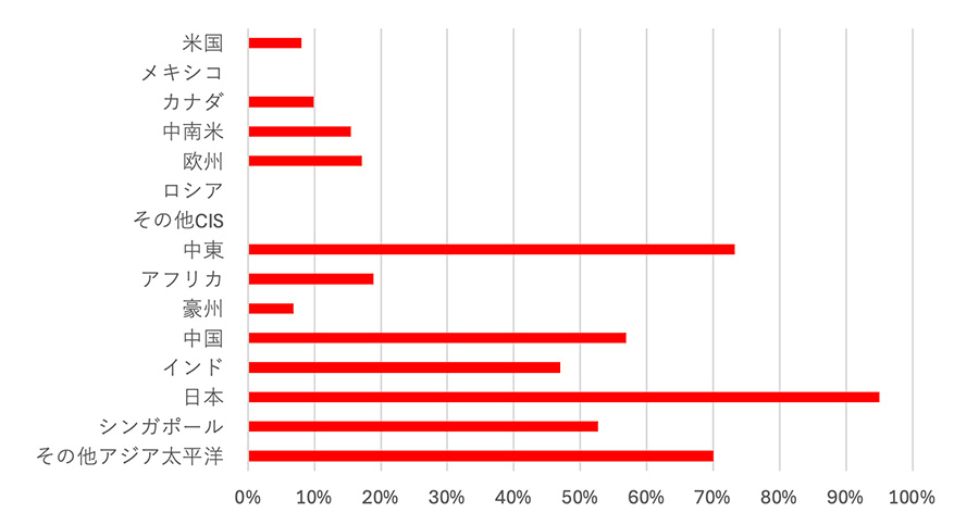 図3 地域別の石油製品輸入における中東依存度(2024年)