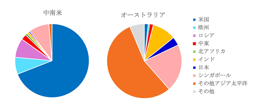 図4 中南米とオーストラリアの石油製品の輸入元ポートフォリオ