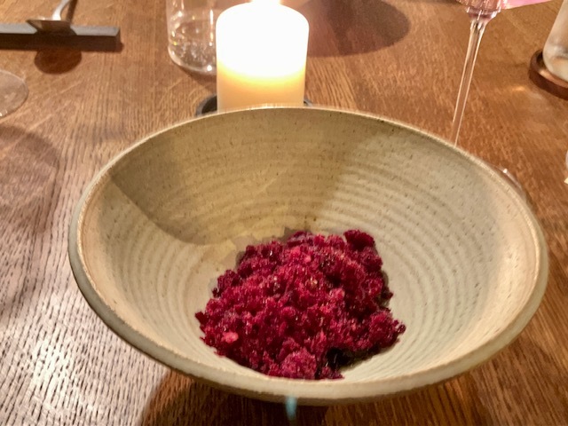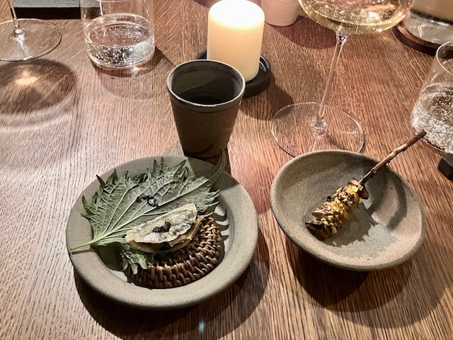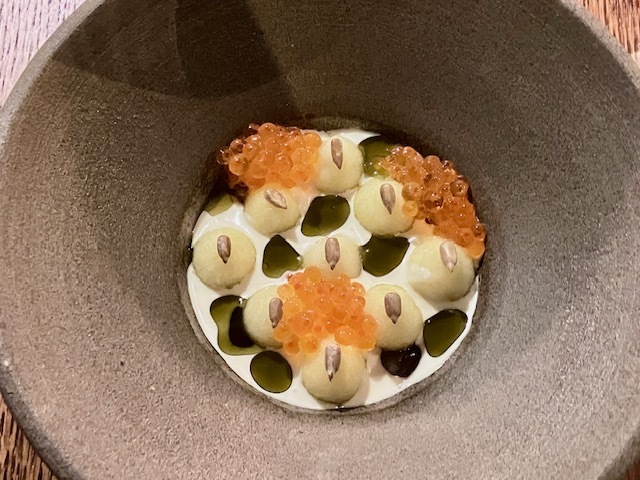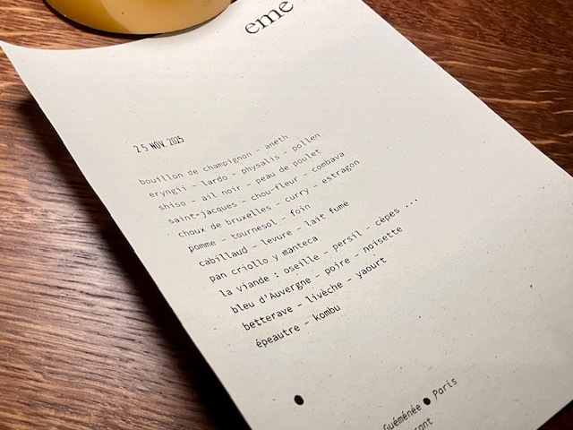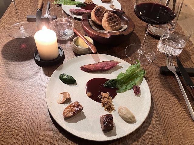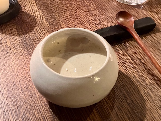アミューズと最初の数皿で、あー、なんかダヴィッド・トゥタンの世界観だ〜、と感じる。聞くとやっぱり、ダヴィッドのところで3年くらい修業していて一番影響受けたそう。ナチュラルでセンスよくて不思議なのにちゃんとおいしい、って、ダヴィッド的。