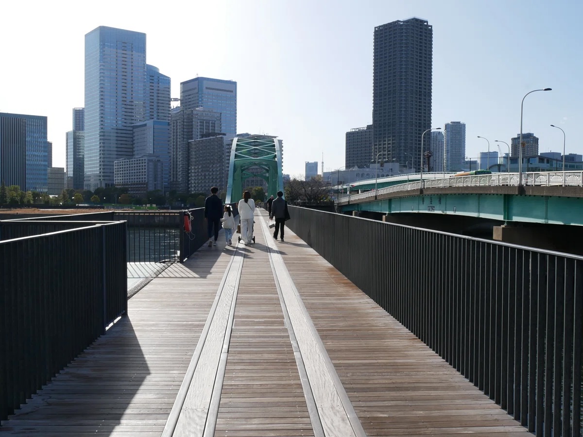 鉄道橋から少し歩くと豊洲のららぽーと豊洲があります。その周辺は公園になっていて、大都会っ子たちが元気に遊んでいました。