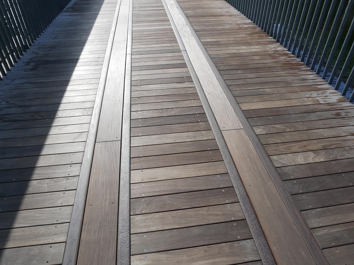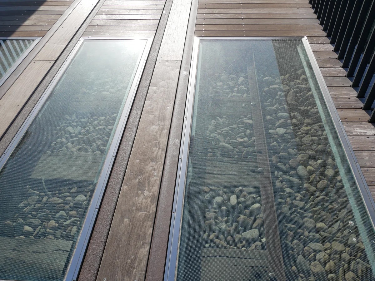 かつて線路が走っていたことを彷彿とさせる線路上のデザイン。