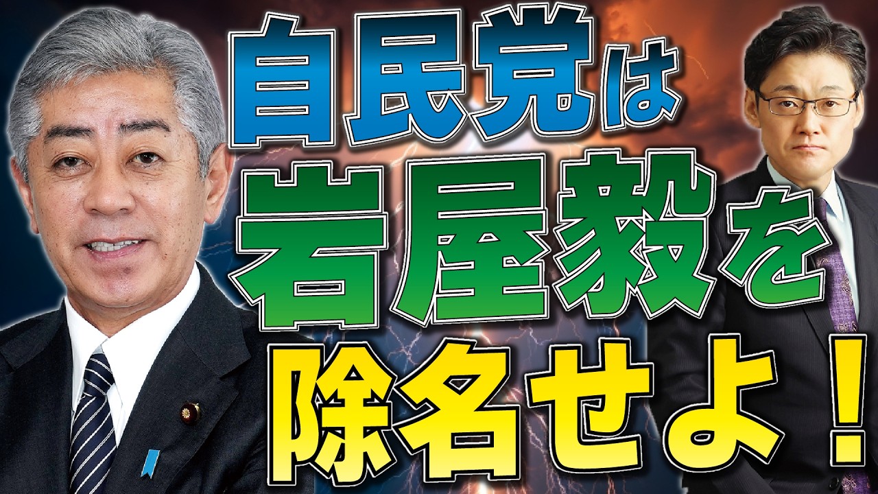 政治学者の岩田温氏が、自民党の岩屋毅氏が国旗損壊罪の創設に反対していることを批判し、自民党は岩屋氏を除名すべきであると主張します。