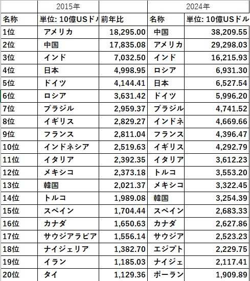 世界の購買力平価GDP(USドル)ランキング(世界経済のネタ帳を参照)