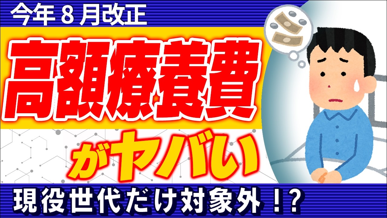 今年8月改正 高額療養費がヤバい:現役世代だけ対象外!? 山田 真哉 2026.04.14 06:10 X Facebook はてブ LINE 健康 2026年8月から改正予定の高額療養費制度について解説します。 【目次】 0:00 今回のダイジェスト 0:15 高額療養費改正の経緯 2:14 高額療養費、いったいどこが変わる? 4:26 大改正の3つのポイント 6:25 現役世代の「2万1000円の壁」 8:54 最後に ■ 公認会計士・山田真哉氏が、税金・ビジネス・投資・経済の得する情報や、国のややこしい制度などを解説する「オタク会計士ch【山田真哉】少しだけお金で得する」。チャンネル登録をお願いします。 テーマパーク化する人気飲食店 謙虚ということ