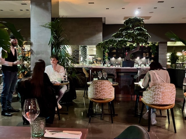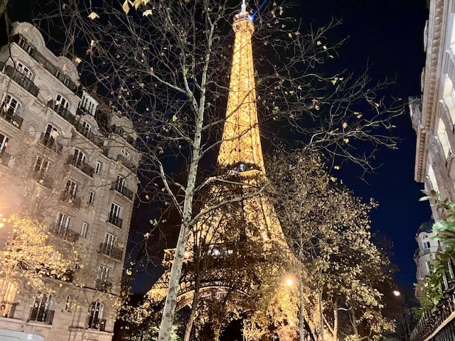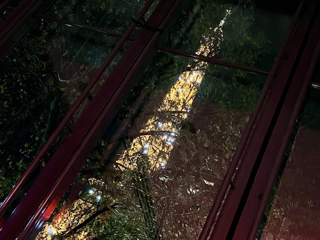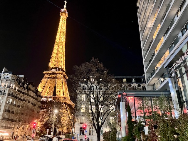 エッフェル塔を眺めながらのディナー、ホテル「プルマン・パリ・トゥール・エッフェル」にあるブラッスリー「フラム」にて。