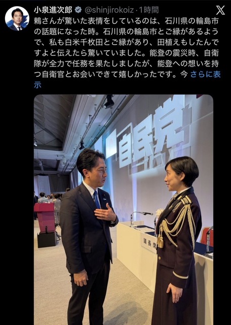 そしてその模様を嬉々としてXに投稿していた議員がいました。その中には小泉防衛大臣も含まれています。大臣は後でまずいと思ったのか投稿を消しています。