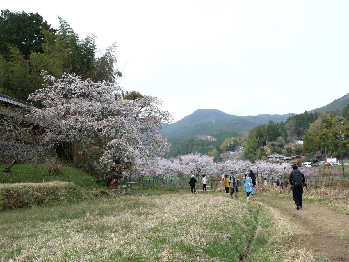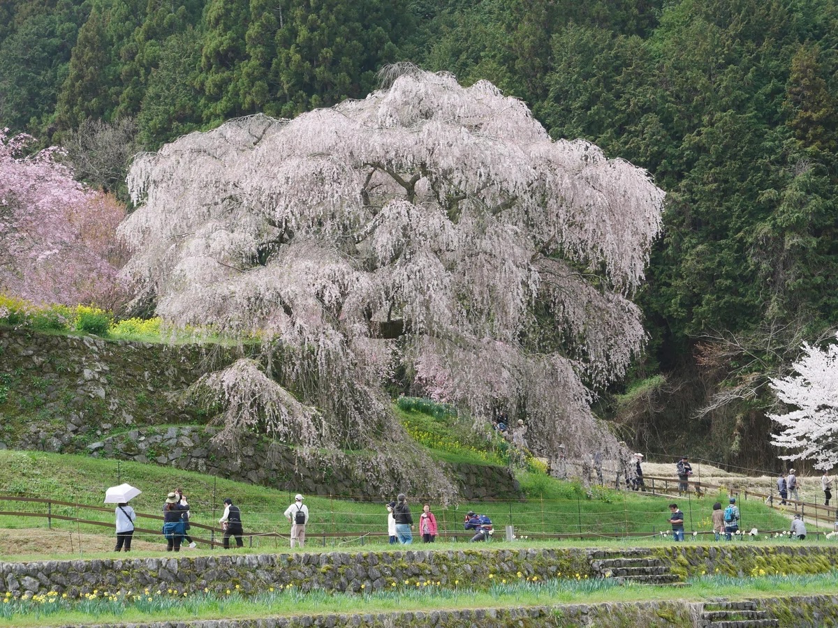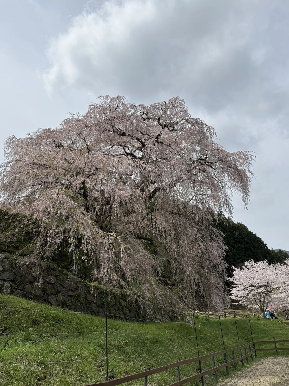 近くまで来るとその大きさに圧倒されます。その姿は桜の花がまさに滝の水が落ちていくようです。この地に根を張って300年余り。戦国の世から時代の流れを見守ってきました。急に観光客が増えて今、どんな気持ちなんでしょうかね。