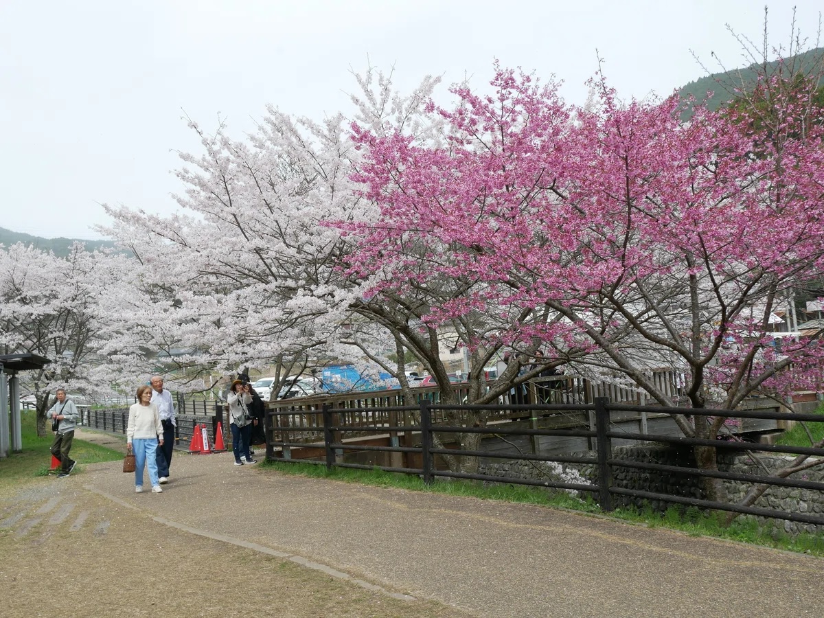 又兵衛桜の周辺一帯は遊歩道が整備されていて歩きやすくなっています。川沿いに桜や桃が植えられていてこちらも見事な咲きっぷりで春の散歩を思い切り楽しむことができます。