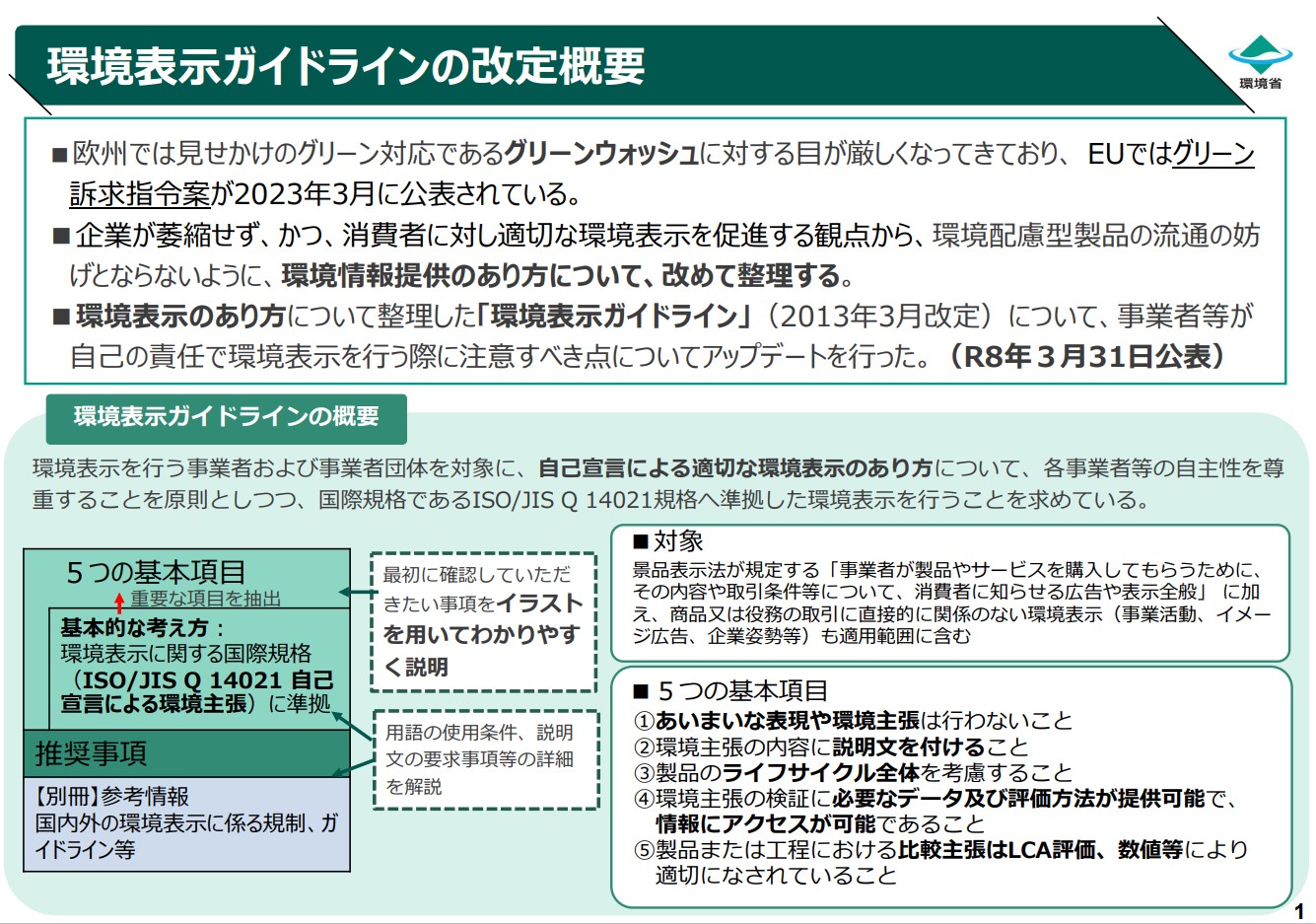 去る3月31日、環境省が13年ぶりの改定となる「環境表示ガイドライン【令和8年3月版】」を公開しました。環境表示ガイドラインの最大の目的はグリーンウォッシュの防止です。