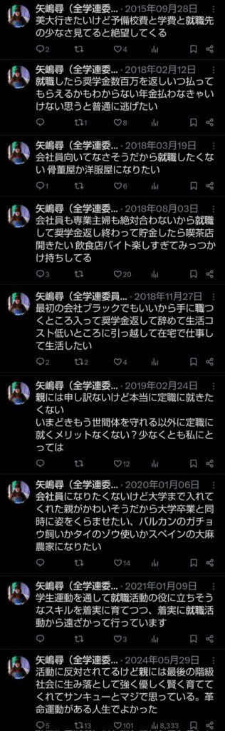 学生運動をして就職活動から遠ざかっています