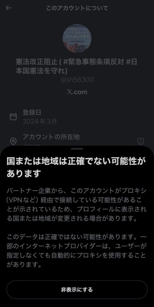 接続地域をVPNで偽装しているのでXで「!」が付いているものです。