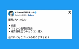 医師たちの「3大やめとけ」リストが話題に:眼科医投稿に各科医師ら相次ぎ応答