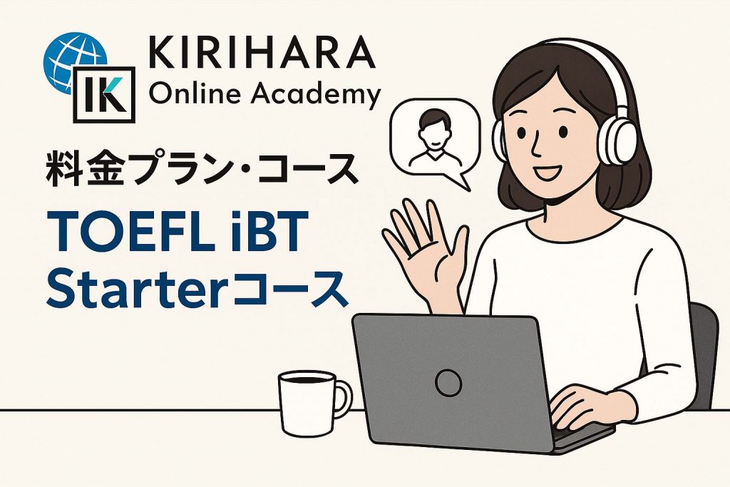 KIRIHARA Online Academyでは、TOEFL iBT® Starterコースを受講することができます。TOEFL iBT®の特性を踏まえ、「現状の英語力が受験レベルに達していない」「学習方法がわからない」といった初学者の方々のために、本受験に必要な英語レベルへの「橋渡し」となるコースです。