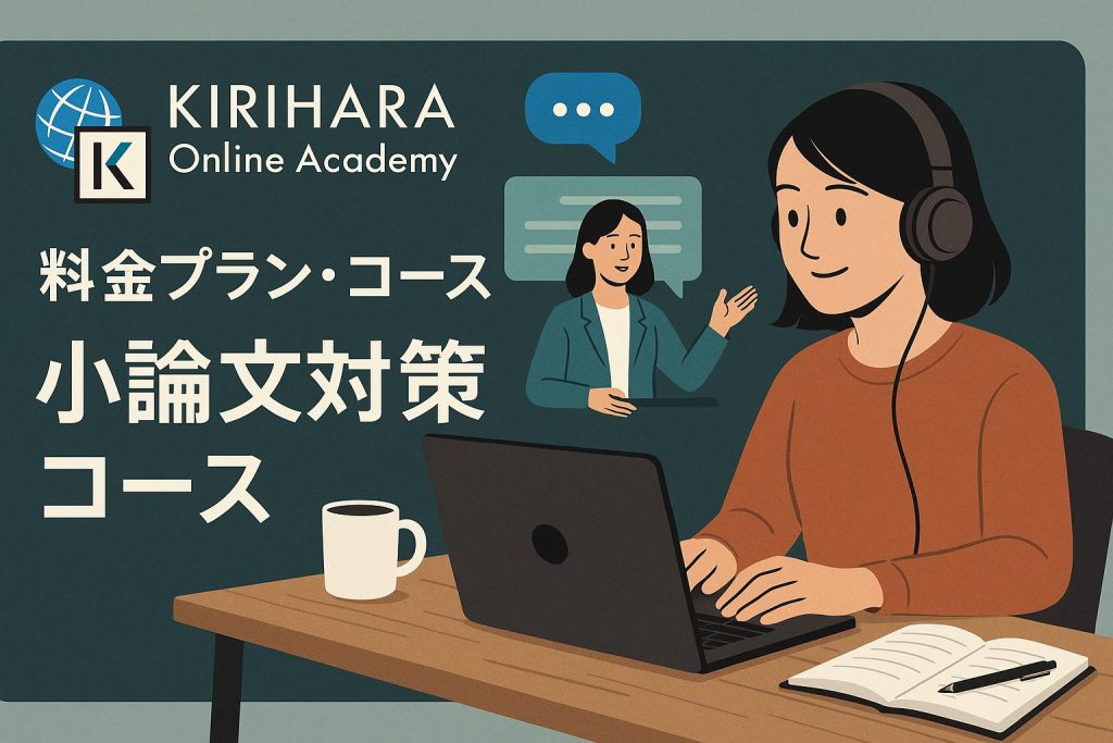 大学入試や就職活動などで必要となる小論文の対策を行うコースです。文章構成の基本から、論理的な思考力、表現力まで、質の高い小論文を書くためのスキルを総合的に指導します。KIRIHARA Online Academyならではのオンライン指導で、テーマ設定、資料読解、意見表明、効果的な記述方法などを学びます。