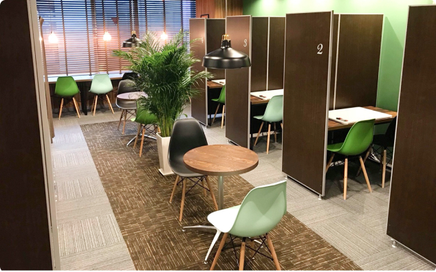 ミライズ英会話の校舎のレッスンスペースは、完全な個室ではなく、パーテーションで区切られた半個室タイプが主流です。半個室タイプは隣のレッスンの声が多少聞こえてくることがあり、静かな環境でなければ集中しにくいという方にとっては、気になるかもしれません。