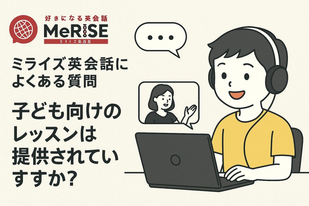 ミライズ英会話は、主に大人向けの英会話スクールとしてのサービスを提供しています。子ども専用のコースやカリキュラムについては、現時点では公式サイトに明確な記載が見当たりません。お子様の英語教育をお考えの場合は、子ども専門の英会話スクールや、子ども向けコースが充実している他のオンライン英会話サービスを検討する方が適切かもしれません。詳細については、ミライズ英会話に直接問い合わせて確認することをおすすめします。